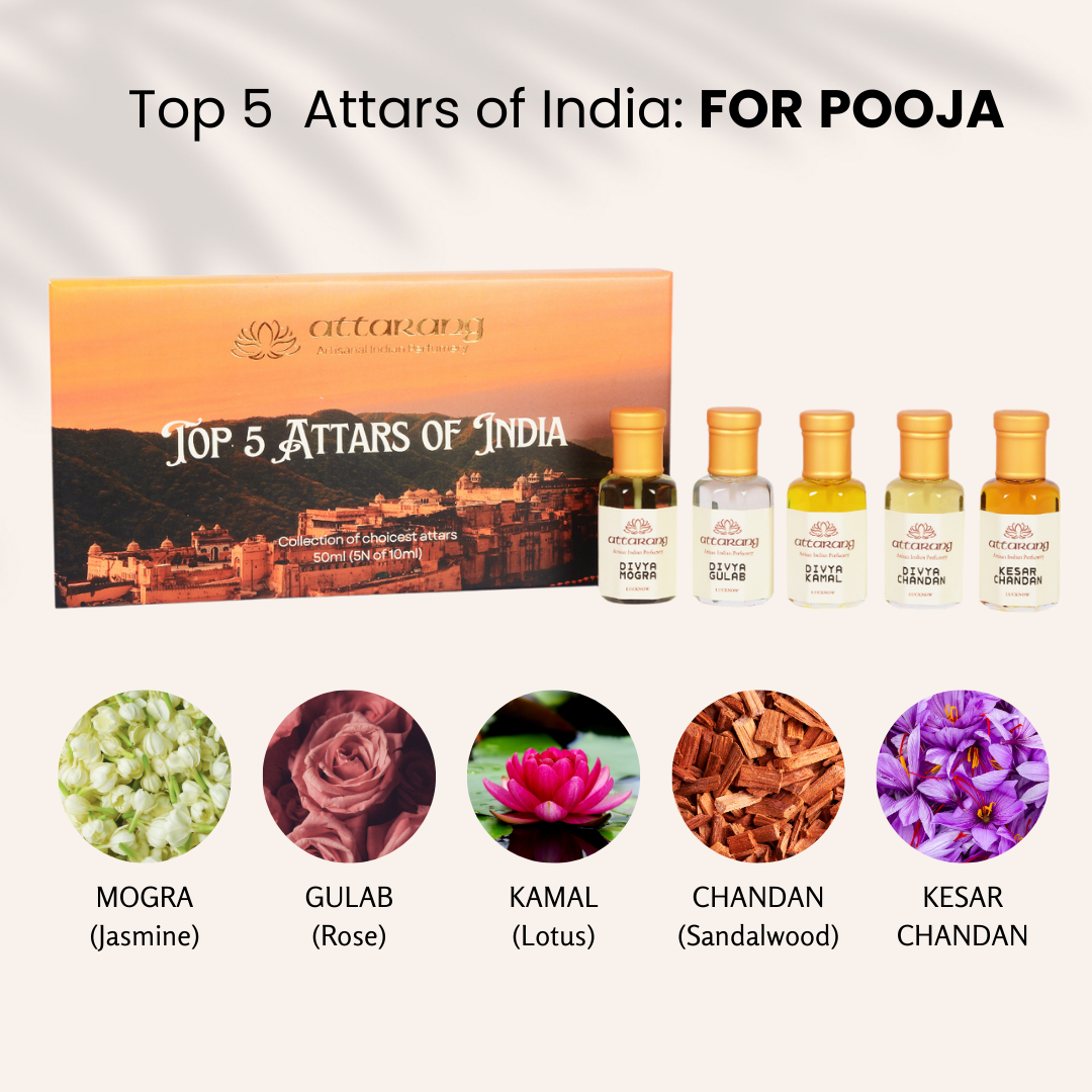 Top 5 Pooja Attars of India | Devotional Fragrances | 5x10ml Attar Set 50ml